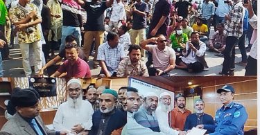 দোকান মালিকের উপর হামলার প্রতিবাদে বিক্ষোভ।